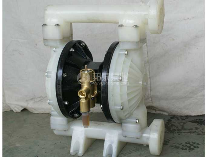 氣動隔膜泵采用壓縮空氣為動力源,可輸送各種腐蝕性液體,帶顆粒的液體,高粘度、易揮發(fā)、易燃、劇毒的液體。共有八種規(guī)格直徑:¢10mm(3/8寸)、¢15mm(1/2寸)、¢25mm(1寸)、¢40mm( 1寸半)、¢50mm(2寸)、¢65mm(2寸半)、¢80mm(3寸)、¢100mm(4寸)。常有六種材質(zhì):鋁合金、鑄鐵、不銹鋼、工程塑料、襯膠、襯氟塑料。隔膜泵根據(jù)不同液體介質(zhì)分別采用丁晴橡膠、氯丁橡膠、氟橡膠、聚四氟乙烯隔膜片等,以滿足不同用戶的需要。石油、化工、電子、陶瓷、紡織、油漆、制藥機械系統(tǒng)單位采用,安置在種特殊場合,用來抽送各種常規(guī)泵不能抽吸的介質(zhì),有QBY1和QBY2兩個系列。