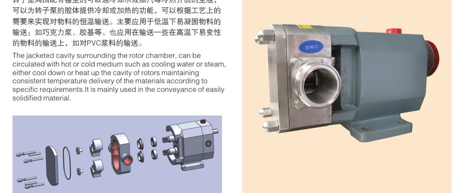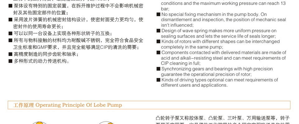 6、轉(zhuǎn)子和轉(zhuǎn)子之間絕無接觸,長期使用亦無磨損,運轉(zhuǎn)平穩(wěn),噪音低,效益高。 7、設(shè)計新穎、安裝維護簡單容易,方便清洗,保證機器內(nèi)部和生產(chǎn)衛(wèi)生清潔。